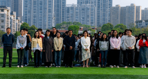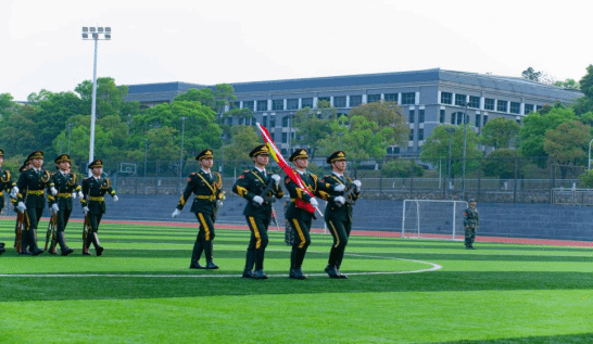 伴随着铿锵有力的步伐,国旗护卫队精神饱满、步伐整齐,护卫着五星红旗庄严走向升旗台。在雄壮激昂的《义勇军进行曲》旋律中,鲜艳的五星红旗迎着初升的朝阳冉冉升起,全体师生肃立致敬,行注目礼,现场气氛庄严肃穆、振奋人心。