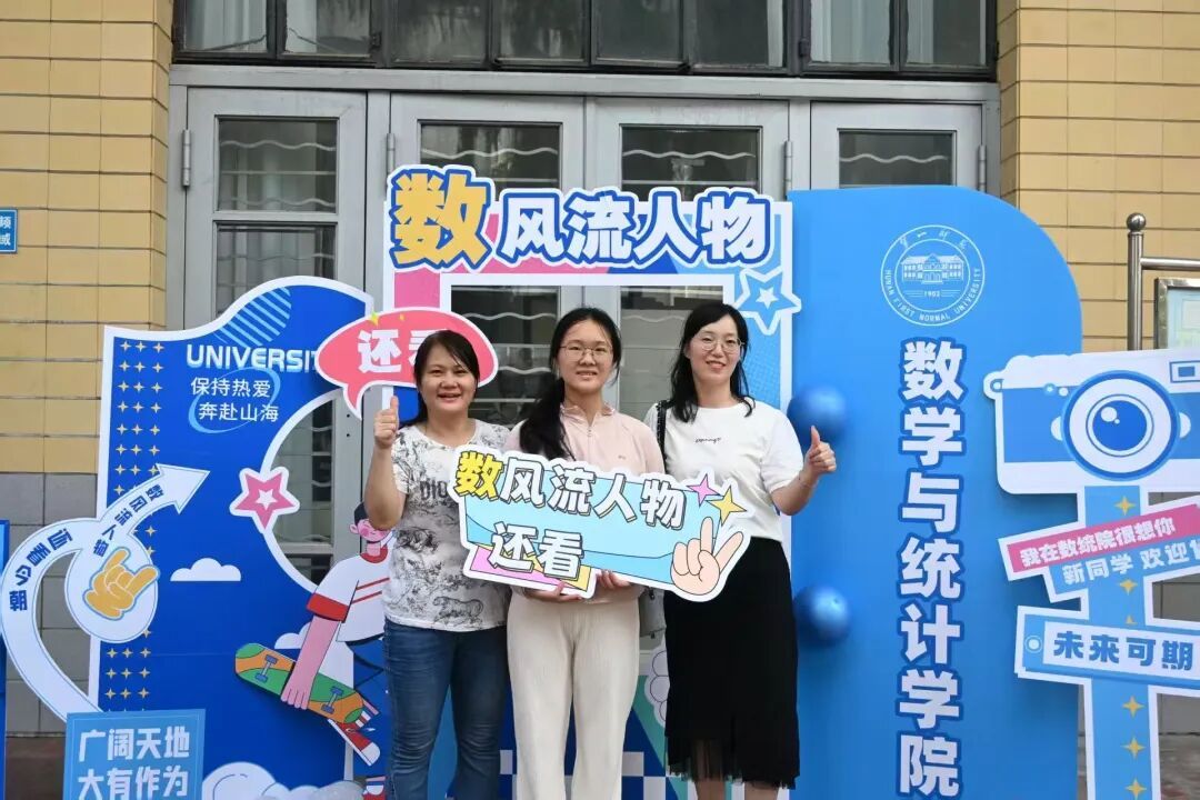 数统院志愿者穿梭各处,搬行李、指路线、解疑惑,用行动织就暖心风景线。